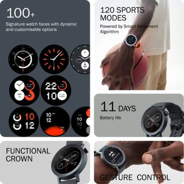 1.3 inch AMOLED display with auto-brightness, 100+ customizable watch faces